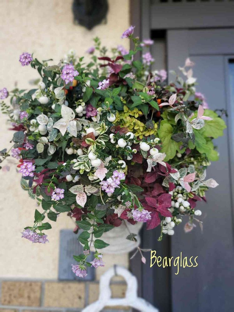 白い実をつけたハッピーベリーとハツユキカズラとコバノランタナと、アルテルナンテラをメインに使いました