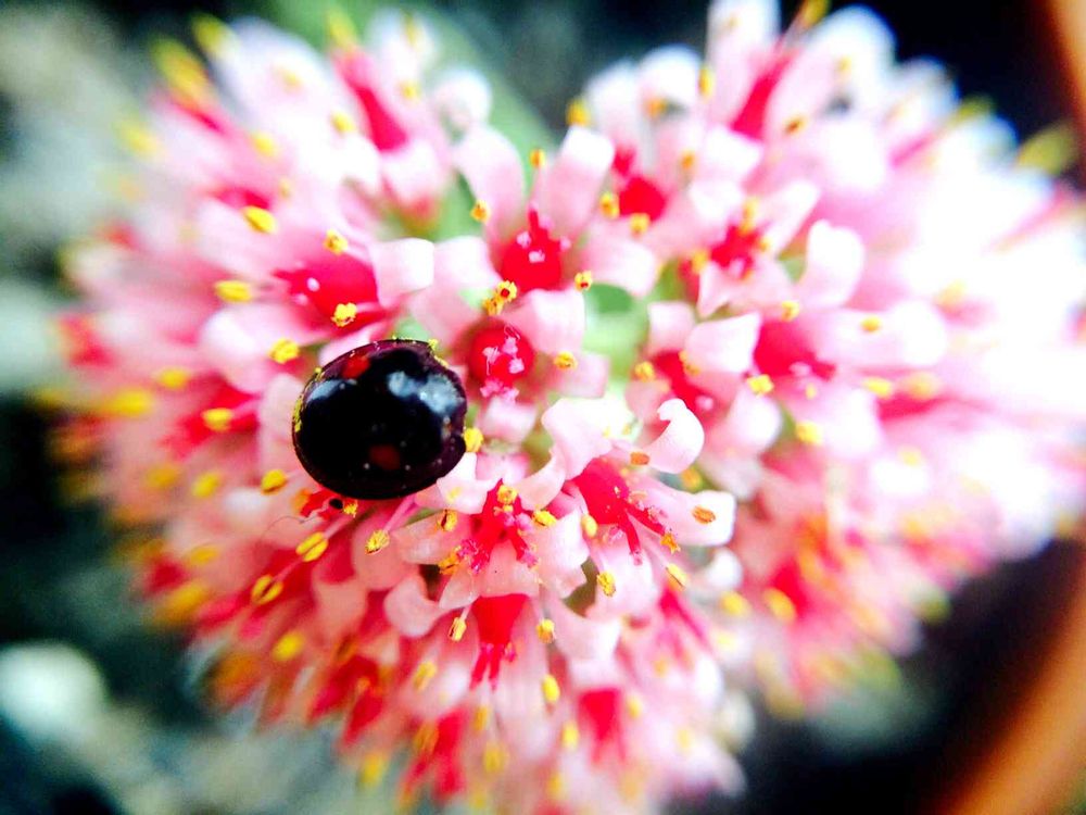 てんとう虫くっつくとラッキーなんだって、でも黄色い汁出すのヾ(〃>_<;〃)ノ ヤメテヨ!
