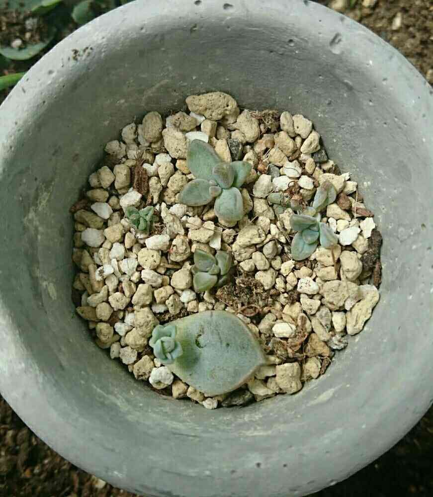 で、この写真は葉挿しの子たちを育てている小さな鉢を連休中に撮ったものです🍀