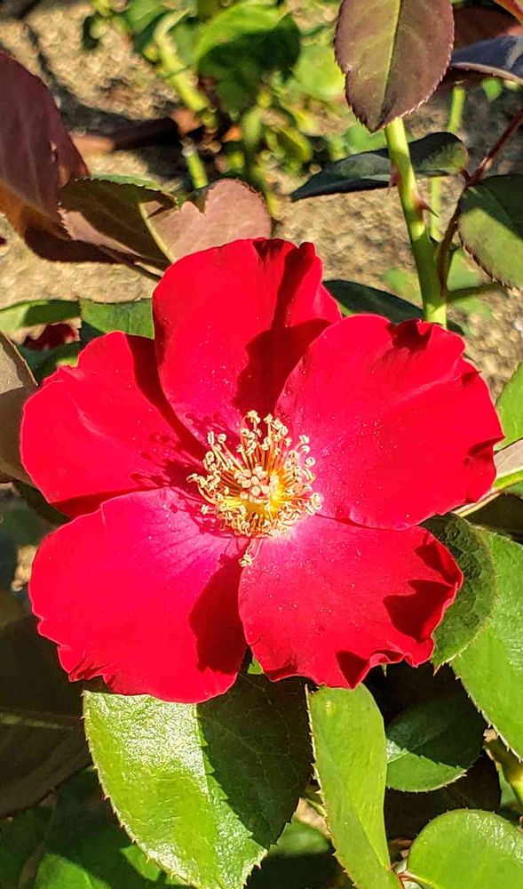 コメントありがとうございます🌸秋のこのバラはと深い赤に黄色のおしべがとてもキレイです💝こちらでは一重のものが多く花弁に軽くフリルが入る。赤バラの傑作品種です。とても気に入っています。興味を持って下さりありがとうございます☀これからもどうぞよろしくお願いします🌷🌸🌺🌻