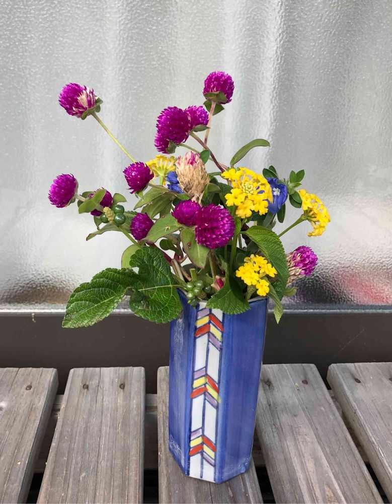 毎日違ったお花や、何気ない草花を綺麗に生けていますね。