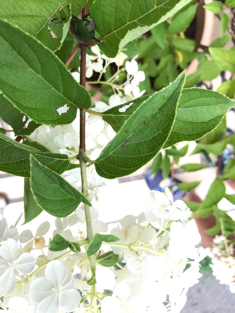 『ピラミッドアジサイ バニラストロベリー』の葉をたべてるのは誰?