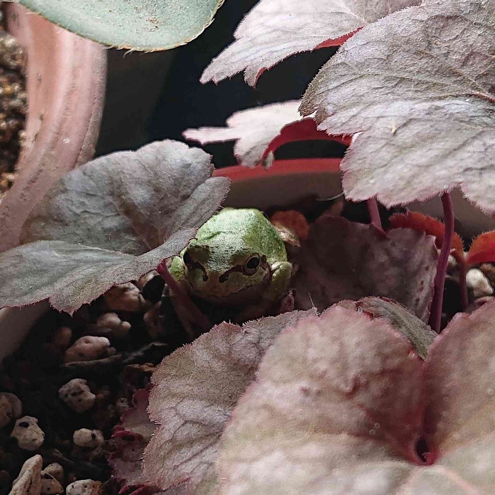 いつもはアロエとかリュウゼツランの間で休憩してはるんですけど今日はヒューケラの隅にいました(笑)