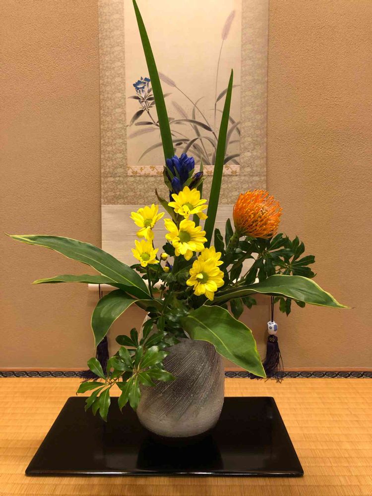 和のテイストでも、洋の花が入ると華やかで面白くなりますね😆👍