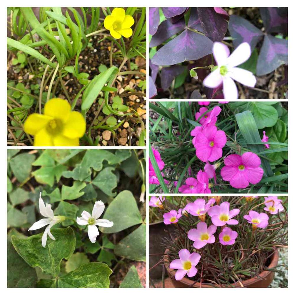 花の色も葉っぱの形、色も違うオキザリス🌸🌿