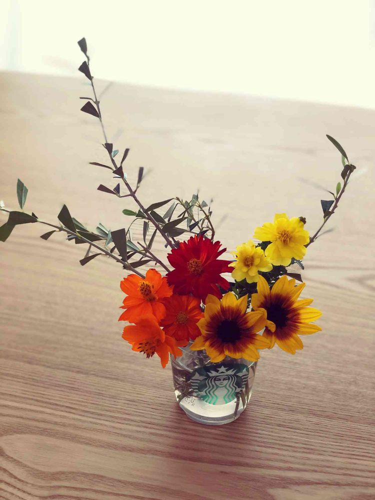 今までは花壇がなかったので、切り花をよく購入していましたが、最近はこうやって剪定した子をお家で楽しめるので有難いです☺️