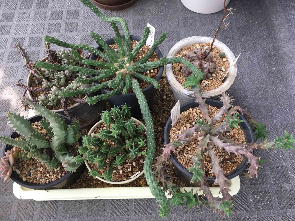 ユーホルビアの孔雀丸(⁈)の生産者さんが、『伸びた手の先に子ができる』とおっしゃってましたので、もしかしたら九頭龍さんも 手の先が土に付いていたら子が出来たりして⁈ (・・?)