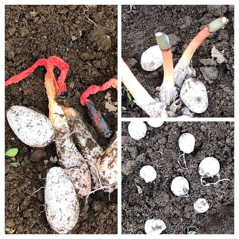 下〜根元の土を掘るとゴロゴロ出てくる。