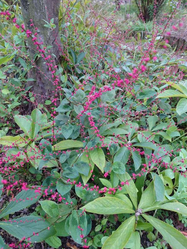 白のミズヒキもあるけど、それぞれの色で群生してます