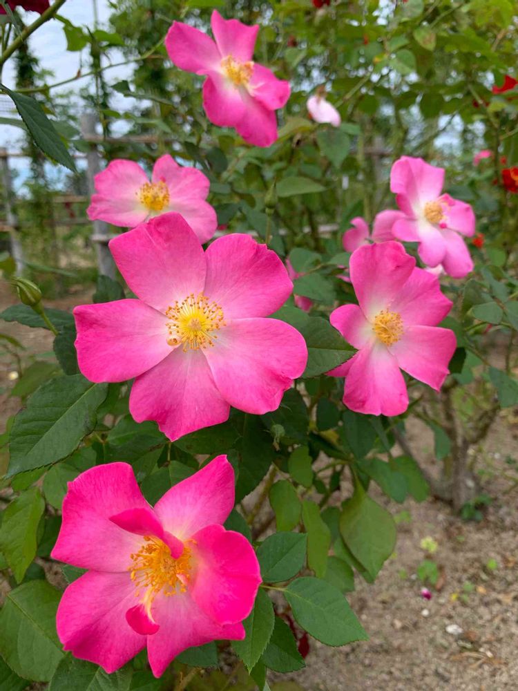 一重でピンクの可愛らしいバラ🌸