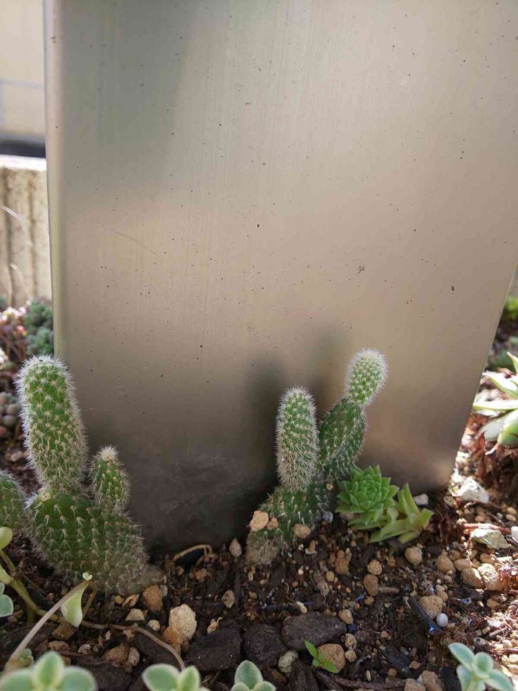 前回投稿の黄麗と一緒に、こどもが寄せ植えしてた…たぶんウチワサボテン?