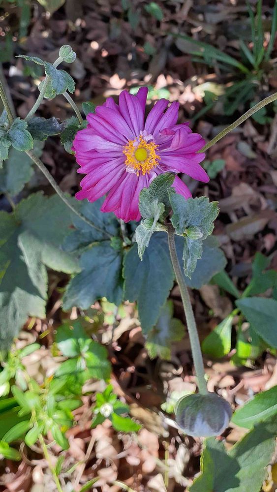 花壇の被害に会わず陰でひっそりと咲いてた秋明菊ピンク八重💓