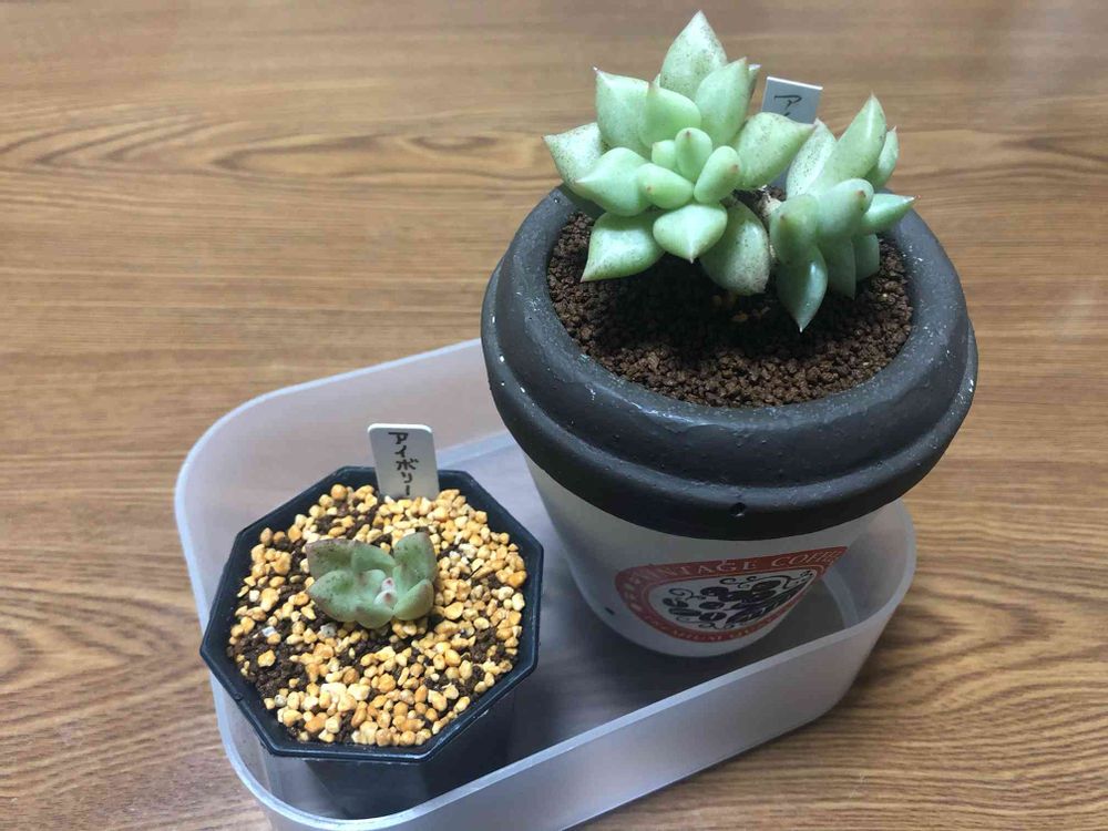 鉢が落ちて子株が一つ取れてしまったアイボリー。まだ小さいのにお一人様になりました🌱