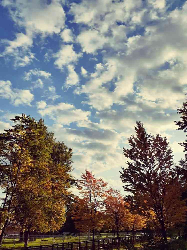 雲のある空は、表情豊かですよね。紅葉が始まった、木々の輪郭がはっきりしていいね👍