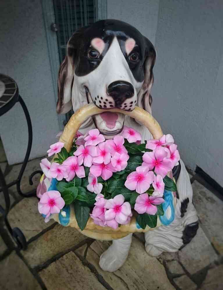 昨日、ペチュニアローマンを頂いた近所のお花屋で日々草を購入しました。