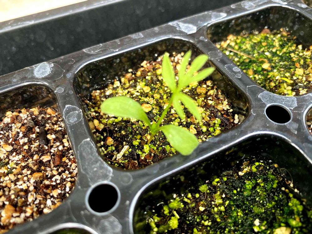 4週間弱の時点でニゲラの本葉が出てきました😂形がめっちゃ可愛くてたまりません❣️来週から2週間の出張に出かけるので、明日くらいにはポットに優しく植え替えしとこうかな‥ん?本葉が2本延びてからポットへ鉢上げなのか😅