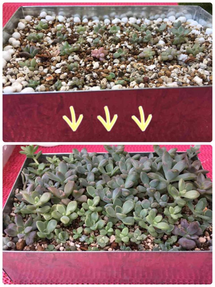 葉挿しの赤ちゃんたち(上が5/28下が7/26)