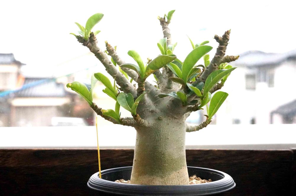 ほとんど葉なしの状態でやってきたアデニウム アラビカムですが、一気に芽吹いてきました。