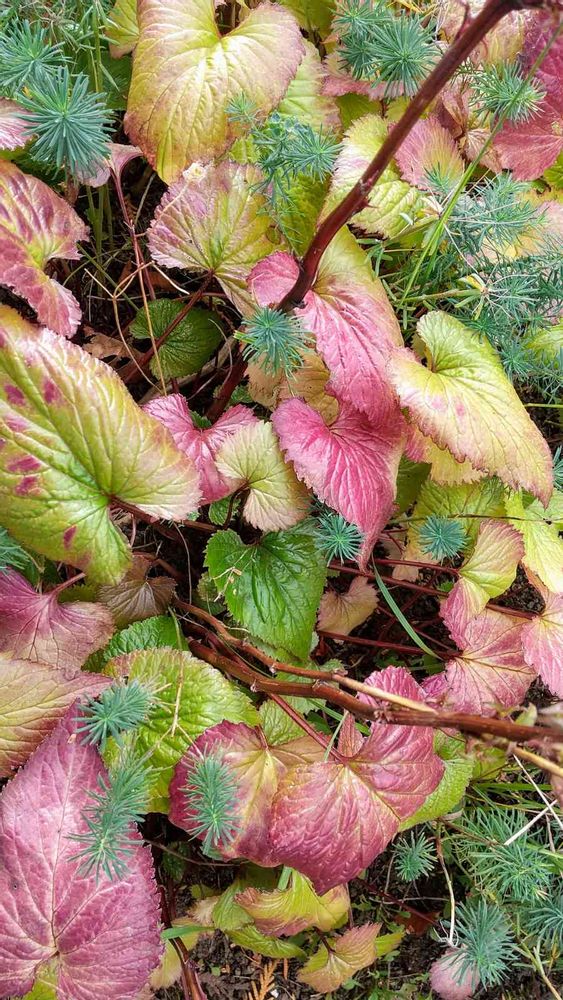 とても美しく色づいていますね💖~* こちらの蕗はこんなふうに紅葉はしないので はぁ~~っ?!!?てなりましたよ😃!フキといっても、いわゆる蕗とは違うんですね。そういえば思いだしましたが北海道の蕗はとっても大きくて傘の代わりになる!って聞いたことがあります!こんな美しい紅葉になるとの話は知らなかったです。
