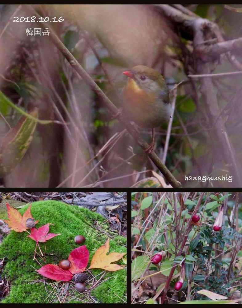 相思鳥の赤いクチバシとツルリンドウの赤い実と紅葉の赤が 似合い過ぎる❤️