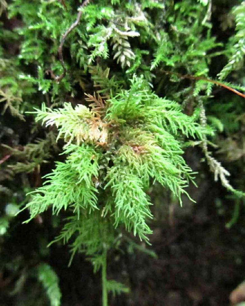 滝壺の近くです。シノブゴケなんかに混ざって生えてました。そんなに標高の高い所ではありません。クモノスゴケ?も、近くで撮りました。