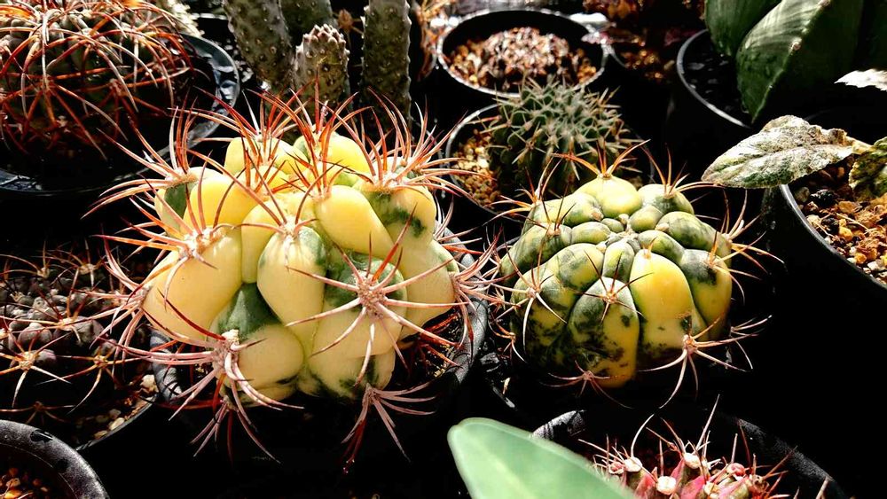 サボテン科 ギムノカリキウム属 新天地錦と、天紫丸錦。🐱🐱