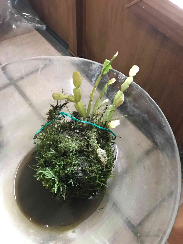 苔玉作ってみたー。何で結ぶんやろう?
