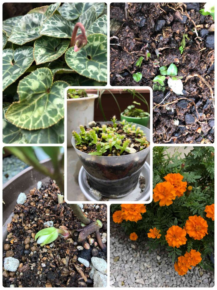 庭のお片付け、剪定、植え替えをしました。シクラメン(原種orガーデン)の発芽、マリーゴールド、クリスマスローズ ニゲルのツボミ、ガーデンシクラメン、チビドラゴン🐉フルーツ