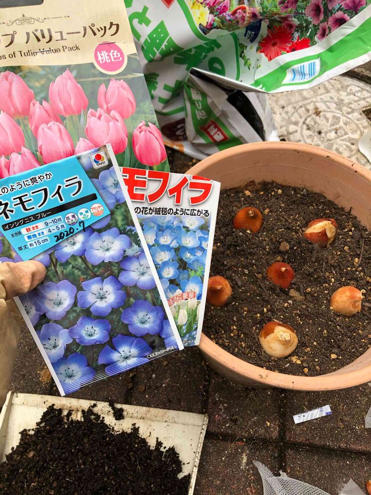 ネモフィラ,チューリップ桃,花壇の投稿画像