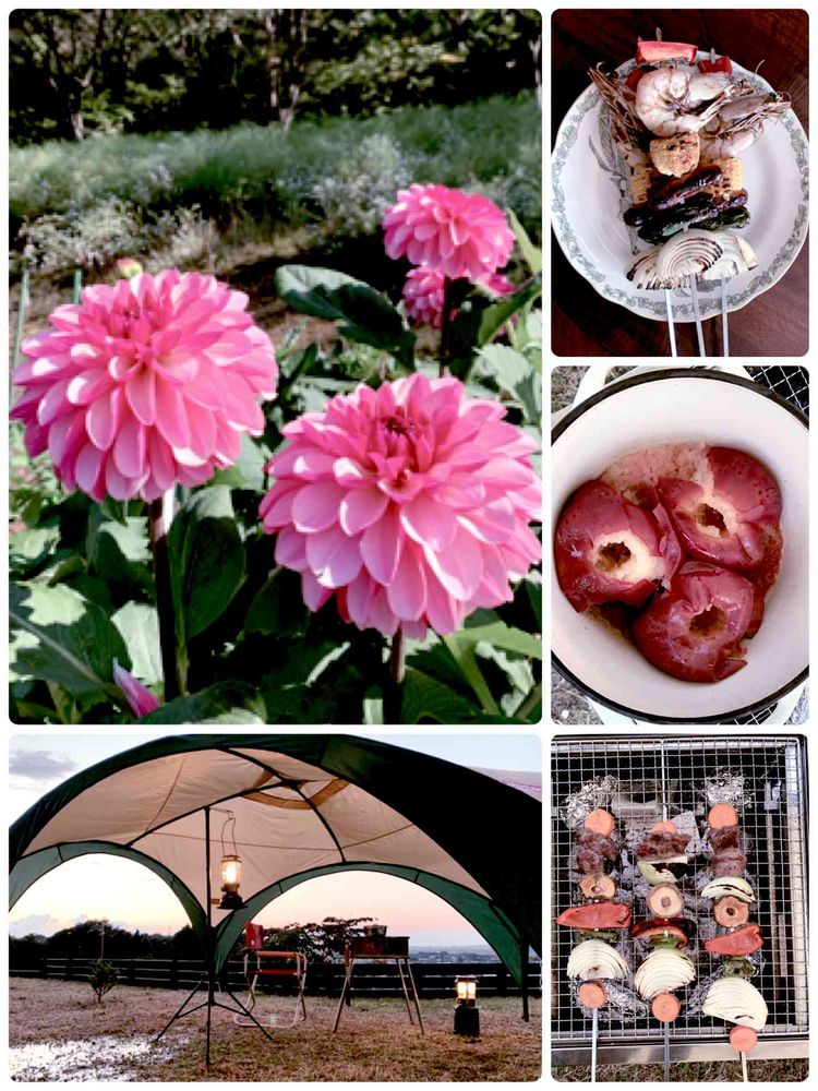 お家でキャンプなんてスケールでっかいな〜😁💓💓外での食事は美味しいやね😍😍ダリアのネーミング👹インパクト強いわ😁❤️