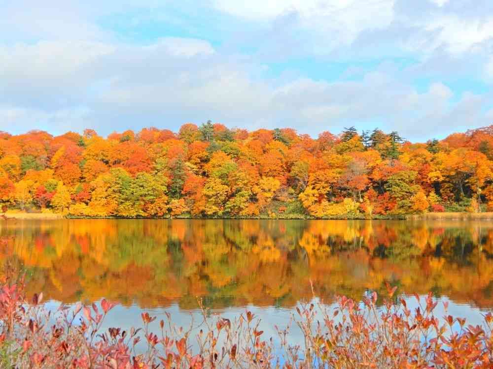 色付いた木々が水面に映り、言葉を失うほどの絶景🍁