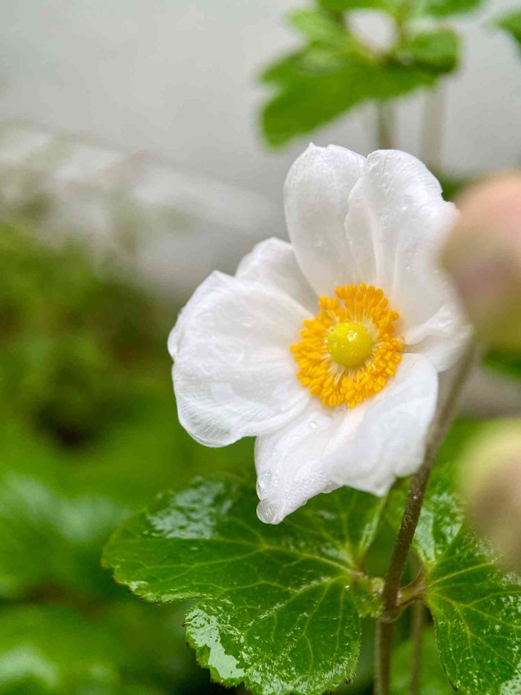 雨に濡れて花びらの透ける秋明菊