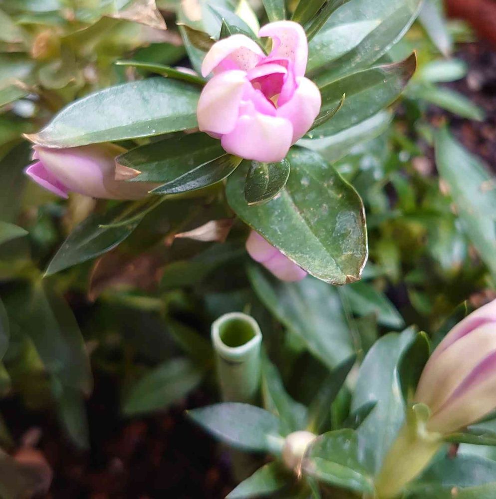 八重咲きリンドウのピンク、頑張って咲いてます🐈🌈✨