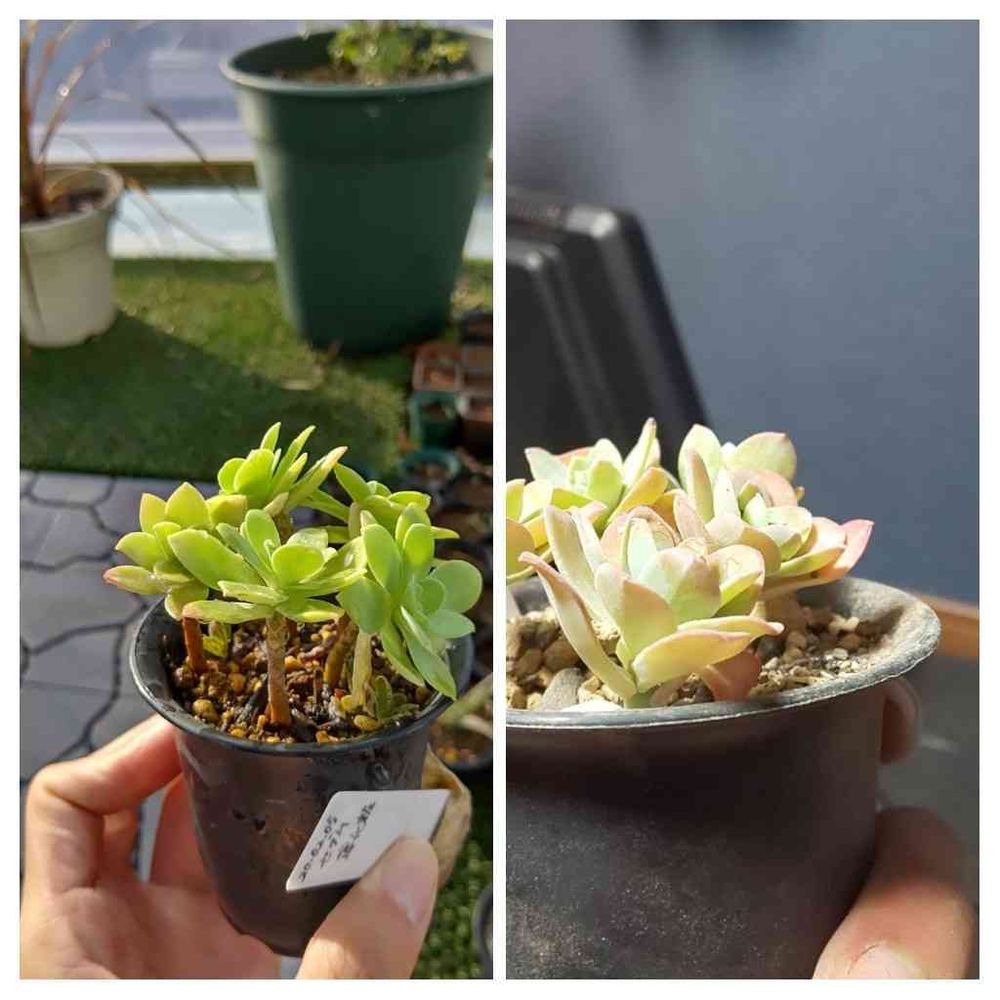 ⚫サボテン、アロエ、塊根など。 ⚫たまに「いいね」押してます。 --------------------------------------------------------- 【19.08】19年8月頃から徐々に多肉植物・サボテンの魅力に取り憑かれてしまいました。 【19.10.22】グリーンスナップを始めました。 【21年~22年】冬越しをほぼ室内避難しないチャレンジ。 【我が家の多肉植物・サボテン・観葉植物】220506時点 662/878 【セダム】3/6 ×春萌(19/11/3) ×プロリフェラ(20/2/1) ×薄化粧(20/2/5) ・※虹の玉(20/2/6) ・※虹の玉?乙女心?(20/2/6) 6・※黄麗(月の王子)(20/3/5) 【チレコドン】2/5 ×ブッコルジアヌス(19/11/3) ×スカエフェリアヌス 群卵(20/3/4) ×万物想(レティキュラーツス)(20/9/4) ・万物想(レティキュラーツス)②(20/10/2) 5・ワリチー(20/10/8) 【クラッスラ】10/17 ・天狗の舞(19/11/3) ・紅稚児(19/11/3) ×姫花月(19/11/3) ・テトラゴナ(19/11/12) ・火祭り光(19/12/4) ×花月錦白斑(19/12/4) ×※花月(金のなる木)(19/12/12) ・神刀錦(20/1/8) ×キムナッキー(20/1/10) ×10・※メセンブリアンセモイデス(ラージフォーム)(20/1/23) ×※花月?黄金花月?⇒火祭り錦?(20/1/23) ・巴(20/2/27) ・※火祭り(20/3/5) ・ゴーラム(20/12/16) ・神刀(20/12/24) ×アイボリーパゴタ(20/12/24) 17・spトランスバール ドラケンスバーグ(20/12/24) 【カランコエ】1/19 ・錦蝶(19/10/19) ×不死鳥錦(19/10/24) ×カーニバル(19/12/4) ×※月兎耳?(19/12/26) ×唐印(19/12/28) ×テディベア(20/1/10) ×ファング(20/1/11) ×ミロッティー(20/1/23) ×※黒兎耳?月兎耳?(20/2/6) ×10・※胡蝶の舞(20/2/6) ×星兎耳(20/2/12) ×ゴールデンバニー(20/2/12) ×福兎耳(20/2/12) ×姫黒兎耳(20/2/19) ×※シナモン?孫悟空?(20/2/19) ×キューエンス(20/2/19) ×※月兎耳(20/2/20) ×黒兎(20/2/20) 19×シナモン(20/2/21) 【センペルビウム】13/17 ×巻絹(19/9/6) ・パシフィックナイト(19/9/14) ・※百恵(19/12/12) ×※高嶺の華(19/12/12) ・※綾桜(19/12/12) ・※ファイヤーバード?パルグラム?(19/12/12) ・※レッドチーフ?ウラヌス?(19/12/12) ・※シャンハイローズ?(20/2/4) ・※神風?(20/2/4) ×10・※綾桜?(20/2/4) ・※麗人盃?(20/2/4) ・※雪牡丹?(20/2/4) ×※紅牡丹?(20/2/4) ・※ラウンドシーン?(20/2/4) ・※巻絹?(20/2/6) ・レッドベル(20/2/19) 17・※ご近所さん(20/5/17) 【ガステリア】39/43 ・春鶯囀バテシアーナ(19/11/20) ・グロメラータ(19/11/20) ・臥牛(19/11/20) ・リリプターナ(子亀姫)(19/11/20) ・白星竜(ベルコサ)(19/11/20) ・錦沙戸宝(19/11/20) ・ニティダ(19/11/22) ・フロッキー(19/11/22) ・姫子宝錦(19/11/24) 10・虎鉾(19/11/24) ・富士子宝錦(19/11/26) ・照姫(19/11/27) ・恐竜×大桑臥牛(19/11/29) ・颯々の松(19/11/29) ・ドラゴンスキン(19/12/2) ・名前不明⇒グリーンワイパー(19/12/4) ・黒鶯囀(19/12/4) ×臥牛錦 糊斑(19/12/4) ・白臥峰ダルマタイプ(19/12/4) 20・バイリシアナ×グロメラータ(19/12/10) ・ピランシー錦※斑多め(19/12/24) ・ピランシー錦※斑少なめ(19/12/24) ・臥牛竜(19/12/24) ・グラキリス(虎の巻)(19/12/25) ・ホワイトパール(20/1/7) ・白銀水牛(20/1/7) ・エクセルサ(20/1/8) ・ダルメシアン(20/1/10) ・タワー(20/1/23) 30・クロチェリー(20/1/23) ×ニグリカンス f.dark monstrosa(20/2/27) ・金剛殿(20/2/27) ×ラウリンソニー(20/3/13) ・幅広ピランシー(20/4/7) ・恐竜×白点臥牛(20/4/7) ・恐竜(20/11/9) ・ラウリンソニー②(20/11/19) ・恐竜②(21/1/12) ・恐竜×春鶯轉(21/1/13) 40・ホワイトパール②(21/1/13) ×ラウリンソニー③(21/2/10) ・エレフィアエ(21/4/13) 43・臥牛②(21/6/14) 【ディッキア】49/52 ・ハイブリッド(19/11/6) ・(アリソナ×マルニエルラポストレイ)×ボーン(20/2/21) ・アリゾナ(20/3/13) ・ニッケルシルバー(20/3/13) ・縞剣山錦(20/3/18) ・(ケリー×マセドイ)×ヘブディング ビッグブルーF1(20/3/24) ・ターザン(20/7/15) ・ゴエリンギー(20/7/15) ・エステベシー(20/7/16) ・グランマルニエル スノウ(20/8/21) ・ダウソニー(20/9/9) ・コリスタミネア パープルフォーム(20/9/16) ・マイケルアンドレス(ブリットルスターF3)(20/9/16) ・ゴエリンギー レッドクローン×ターザン(20/9/18) ・ターザナ(20/9/18) ・レッドボーン×スカイウォーカー(20/10/27) ・グランマルニエル(20/11/4) ・トゥーシ―F2(シルバークローン)(20/11/4) ・グレイオプス(20/11/5) 20・タイニーレッド×ヘブンアンドヘル(20/11/5) ・マルニエルラポストレイ エステベシー シーディング ブラジル(20/11/5) ・(レッドシャーク×ディストーション)×ジョーズ(20/11/5) ・ブラックアイス(20/11/6) ×ダウソニー×ガーネットクロウ(20/11/12) ・デリカータ(20/11/18) ・エステベシー×ゴエリンギ―(20/11/30) ・ゴエリンギーOPS セレクト ホワイト(20/11/30) ・(ソウフィッシュ×7a)×ターザン(20/11/30) ・ベアテアエ レッドクローン(20/12/07) 30・アリゾナ×HU-5(20/12/08) ・エステベシー②(20/12/08) ・ダコタ(20/12/09) ・マルニエルラポストレイ(20/12/10) ・エステベシー×ブリットルスターF2(21/1/8) ・マウンテンオブニードルズ(21/1/14) ・エステベシー③(21/1/27) ・パラファット(21/2/10) ・ジョーズ×ドナマリエ(21/3/15) ×フォステリア×エステベシー(21/3/15) ×40・フォステリア×エステベシー②(21/3/15) ・カタナ(21/3/24) ・スノーストーム×ブライヤーパッチ(21/3/24) ・ワサビ(21/4/7) ・ブラックアイス②(21/4/12) ・ブラ