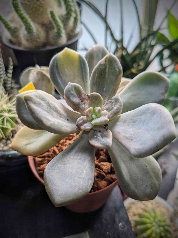 夏の西日&熱波にも耐えた美丈夫さん。我が家の数少ない生き残り💓子株は出来ないけど……来た時の2倍の大きさになったよ〜🎶