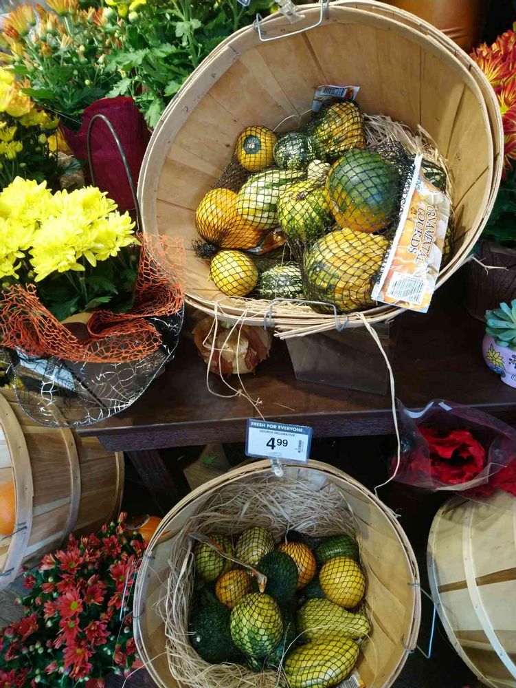 スーパーでパンプキン🎃が色々出てました。種類ミックスの網売りで$4.99は安い😊。1つの網に10個ぐらい入ってました。