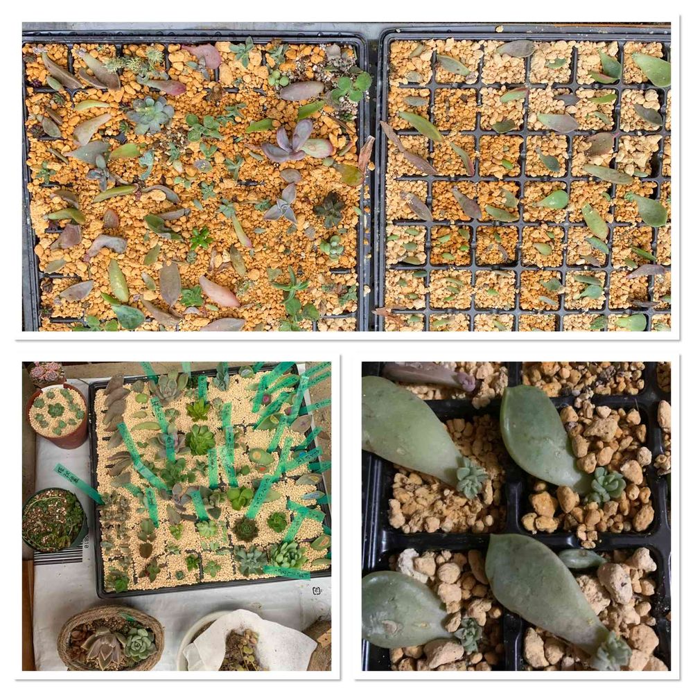 多肉の葉挿しと、カット苗の根っこ出しをしています。