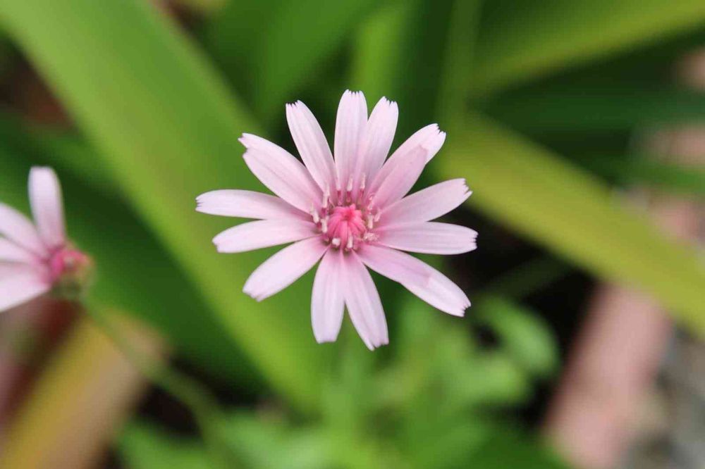 こぼれ種で咲いた庭のモモイロタンポポです。