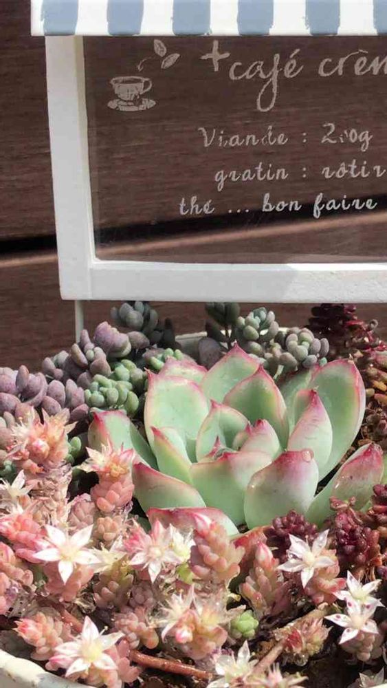今日のpic。前に作った寄せ植えのミルキーウェイの花咲いた〜🎶そして、ダシフィルムリファレンスとコーラルカーペットと、中央の子は名前がわかりません😅