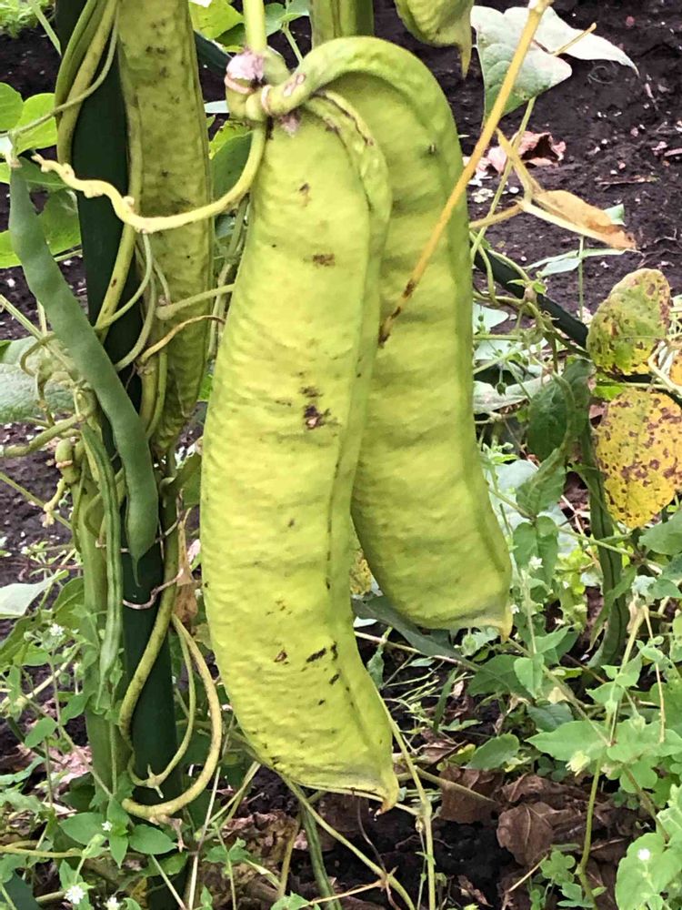 10月14日、宇都宮市海道附近の畑で出会った、確か?「ナタマメ」長さが何と30cm程もありそうな、巨大な鞘が先の方でカーブして、まるでナタ🪓の様な形の「豆」だそうです⁉️