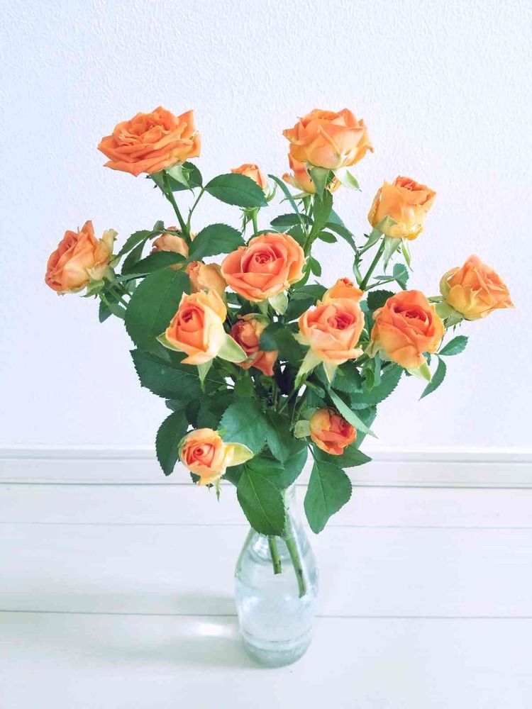この薔薇は、先日大きな花束をいただくことがあって、その花束は大輪の薔薇、百合、竜胆など、恥ずかしくなるくらいボリューミーな💐だったんだけど、私が一番気に入ったのはこちらのミニバラでした。