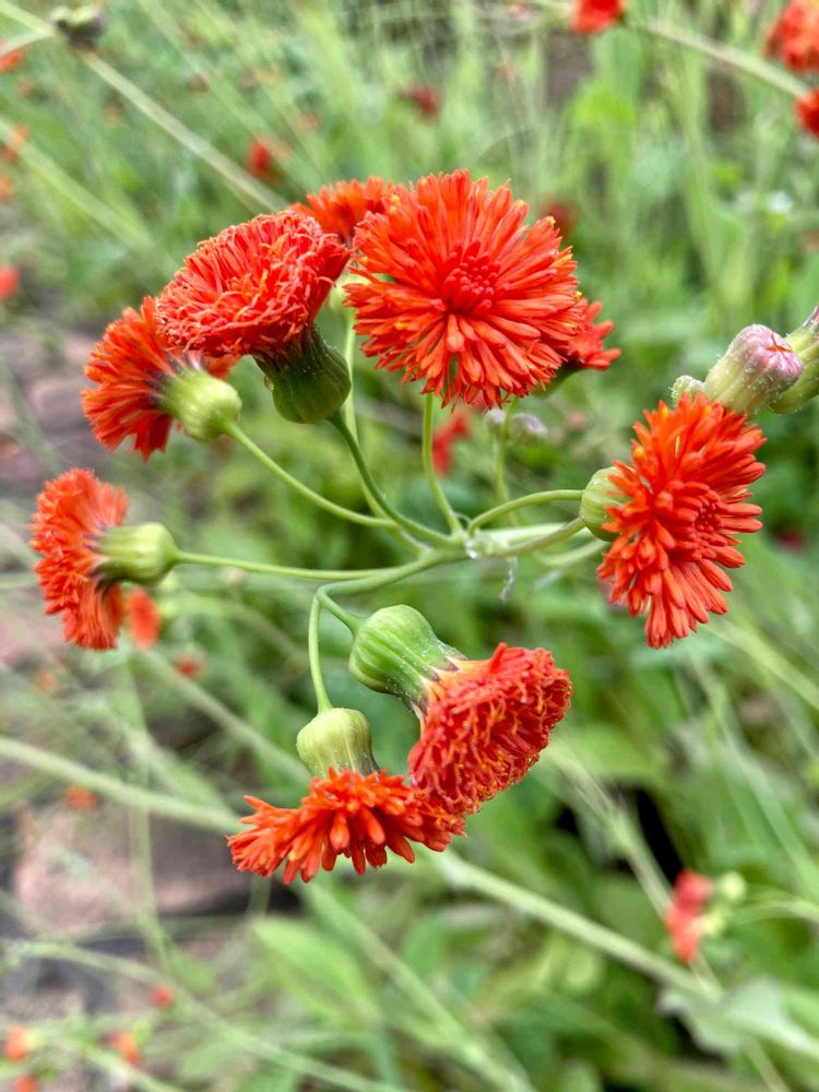 キレイなオレンジ色🍊、茎が細いからお花が重くなってユラユラ〰
