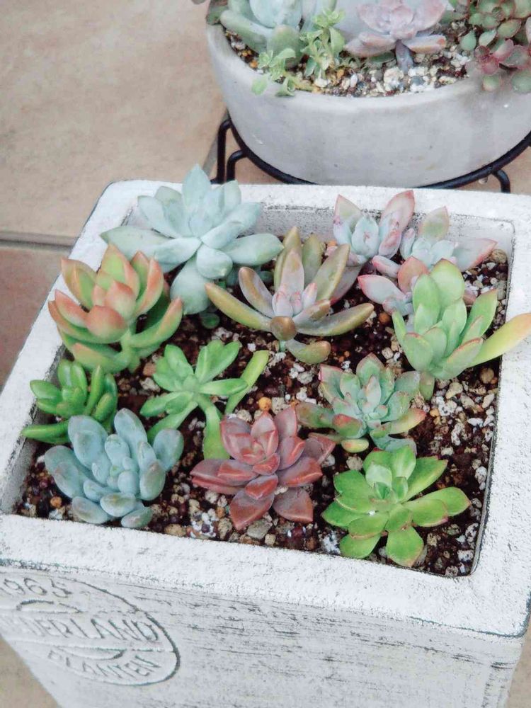 以前気に入って買っていた四角い鉢に、この間お迎えした多肉さんを寄せ植えてみました😃