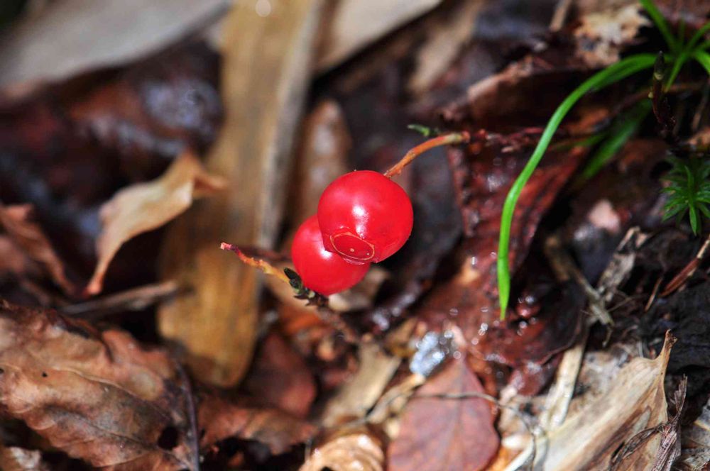 鮮やかな赤い果実。1cm程の大きさで小さなさくらんぼみたい🍒とても目を惹き、存在感のある岩躑躅の果実。
