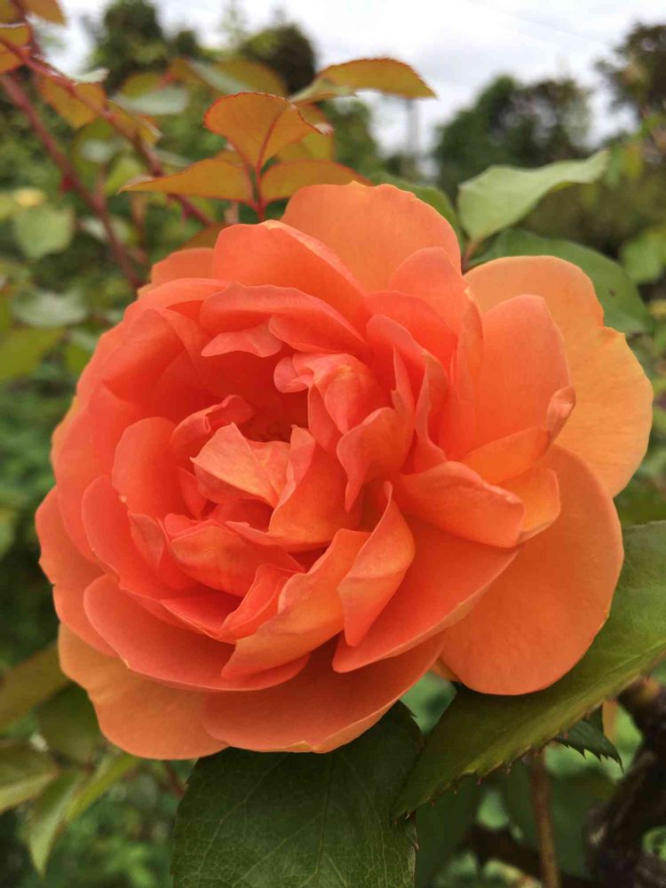 一際目立っており綺麗なオレンジ色🧡でした😍夏のバラ園でも拝見したのですが、落ち着いたオレンジ色で、お花も沢山咲いていました😀オースティンさんの品種色々みてみますね💕