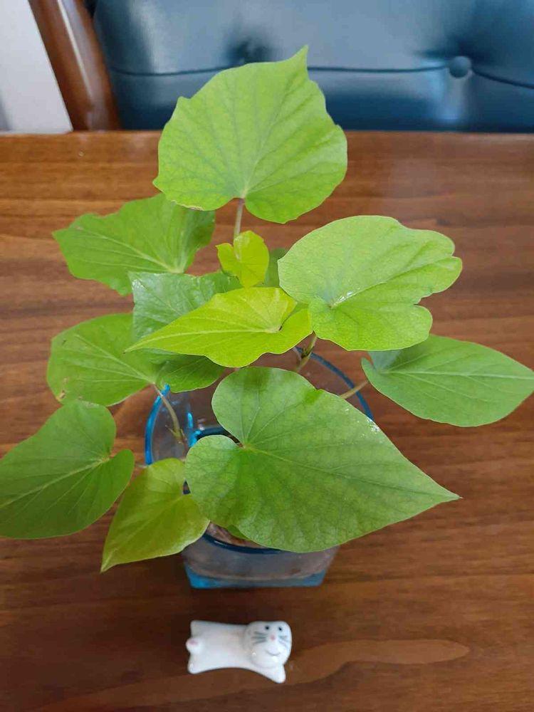 チョコと緑良いですよね、外に植えたサツマイモどうなりましたか?❤️🍀