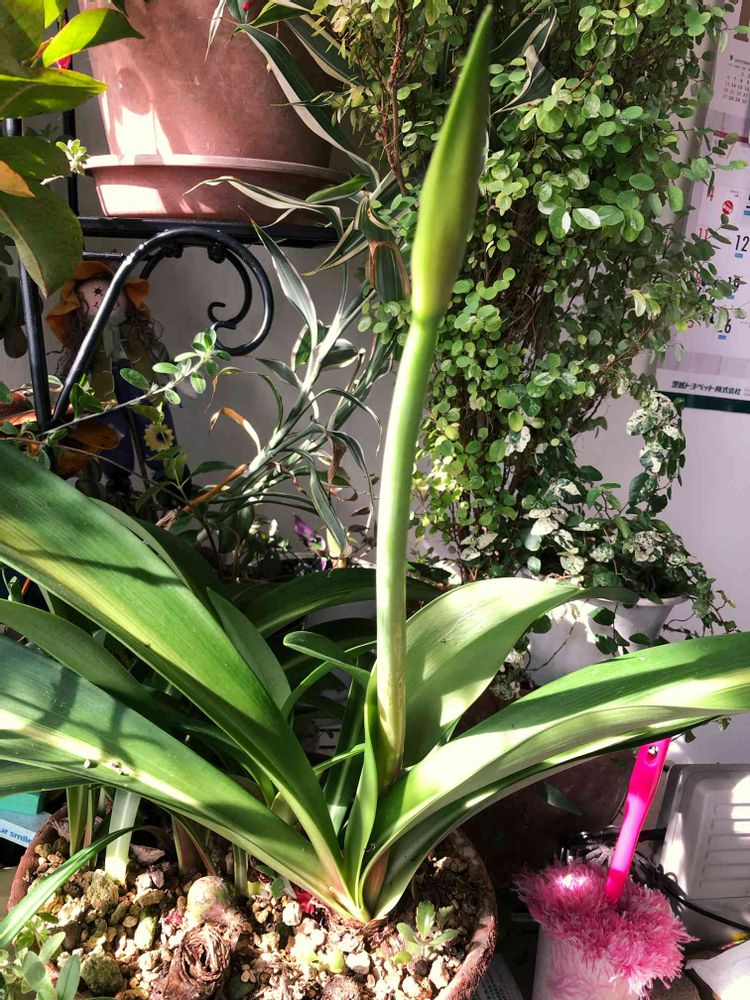 秋咲きアマリリス (シロスジアマリリス)の蕾が膨らみました。