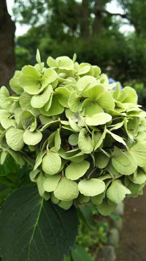 散歩中に歩道脇の植え込みに咲いてた紫陽花が綺麗に緑になってました🤗🎶