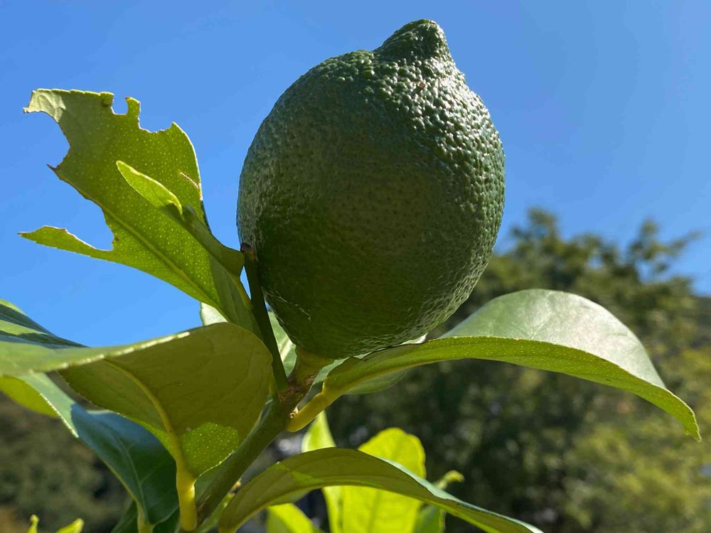 1つだけの🍋なのに、横の葉っぱにアゲハチョウの🐛が…