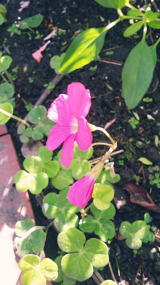 移植したオキザリスがサルビアの下で咲いてました🤗💕